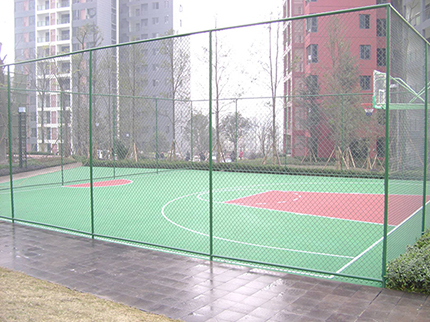 籃球場圍網表面處理:圍網采用PE/PVC包塑絲,立柱、邊框采用噴塑、浸塑處理